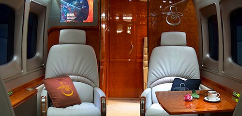 You already know Sikorsky’s most famous chopper. That would be the Black Hawk…as in “Black Hawk down.” However, they also make a couple of primo VIP helicopters for civilian use, and the S-76C, which runs a modest$12.95 million, is one of them. This baby can seat up to 12 passengers, but you can’t treat VIPs like cattle. So, as you can see, the configuration pictured here seats just 4…in complete luxury. It’s a shame the range is only 473 miles (with a top speed of 178 mph), because I could sit in this thing all day.